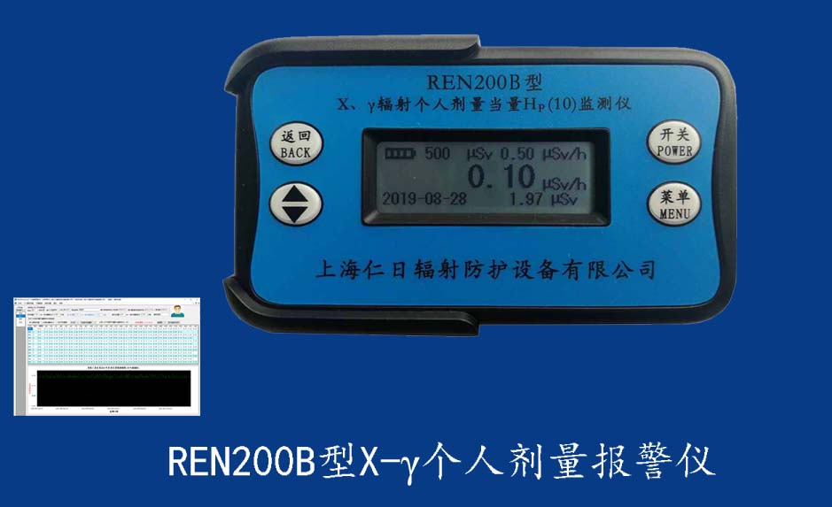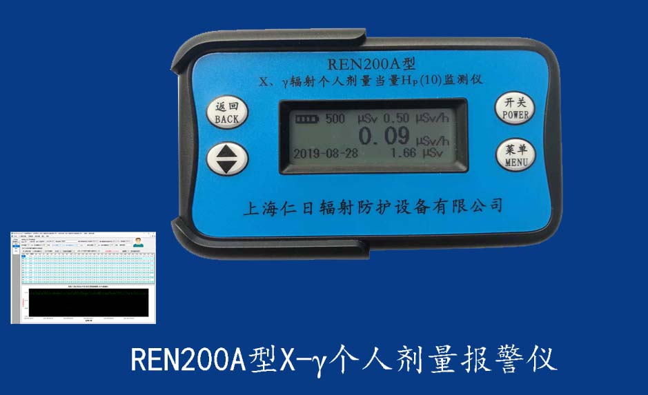 • REN200 X-γ輻射個(gè)人報(bào)警儀 REN200型X、γ個(gè)人劑量報(bào)警儀(又叫X、γ輻射個(gè)人劑量當(dāng)量HP(10)監(jiān)測(cè)儀)內(nèi)置高靈敏度蓋格計(jì)數(shù)管為探測(cè)器,主要用來(lái)監(jiān)測(cè)各種放射性工作場(chǎng)所的X、γ以及硬β射線的輻射,具有響應(yīng)快,測(cè)量范圍寬的特點(diǎn)。能顯示工作場(chǎng)所的劑量當(dāng)量率和累積劑量,更換電池時(shí),日期及累積數(shù)據(jù)能永久保存?蛇x配RenRiPersonal個(gè)人劑量管理軟件,該軟件可存儲(chǔ)多個(gè)人的歷史數(shù)據(jù),能記錄日累積、月累積、年累積、輻照時(shí)長(zhǎng)、計(jì)算平均劑量率、扣除或不扣除本底輻射,且以文字和圖譜的方式展現(xiàn)數(shù)據(jù)。廣泛應(yīng)用于核電站、加速器、鋼鐵、化工、同位素應(yīng)用、醫(yī)院、工業(yè)X、γ無(wú)損探傷、放射醫(yī)療、鈷源治療、γ輻照、放射